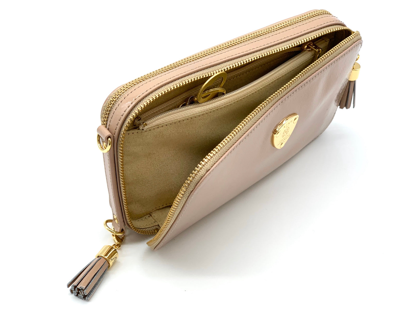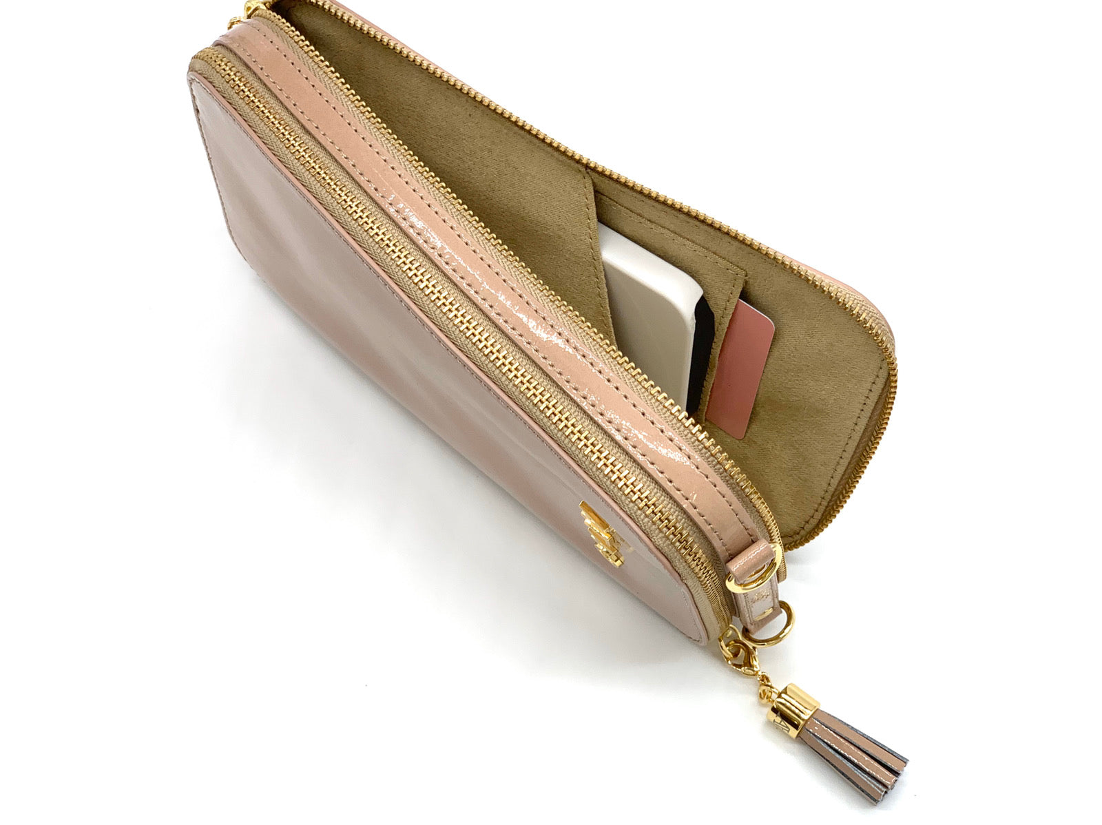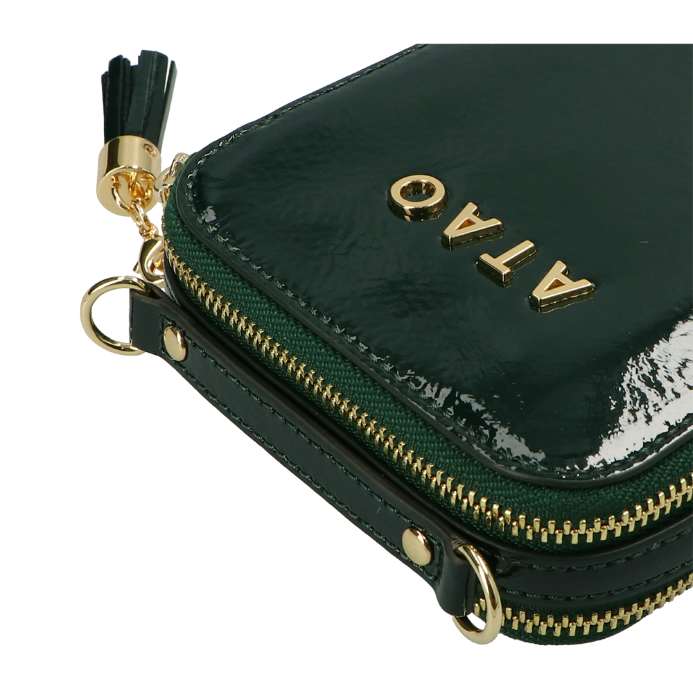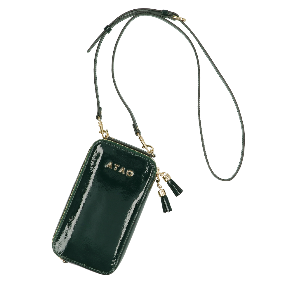 ATAO(アタオ)(あたお)の大切な貴重品を守るという意味を込め名付けられたお財布ポシェット(スマホポシェット『アミュレット』。(ウォレットポシェット)(モバイルバッグ)(スマホポシェット)思いやりや優しさを育むと言われる『ローズクォーツ』、勝利を呼び幸福をもたらす『ルビー』、愛と献身を意味する『エメラルドグリーン』、長寿や健康を意味する『パールグレージュ』の全4色。(エナメルレザー)(カウレザー)(牛革素材)(肩がけ)(斜め掛け)(ショルダーバッグ)(ミニバッグ)(マイクロバッグ)(クラッチバッグ)(あみゅれっと)(お財布スマホポシェット)(モバイルポシェット)(スマホショルダー)