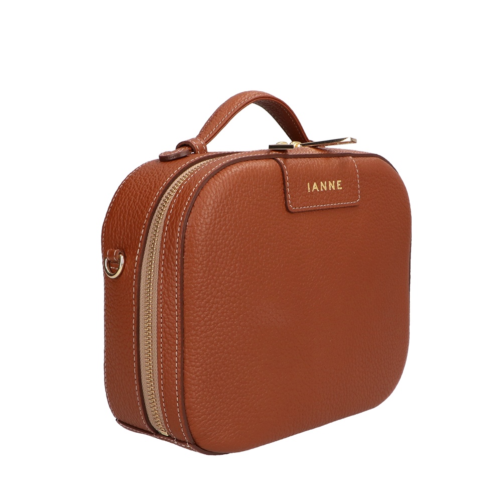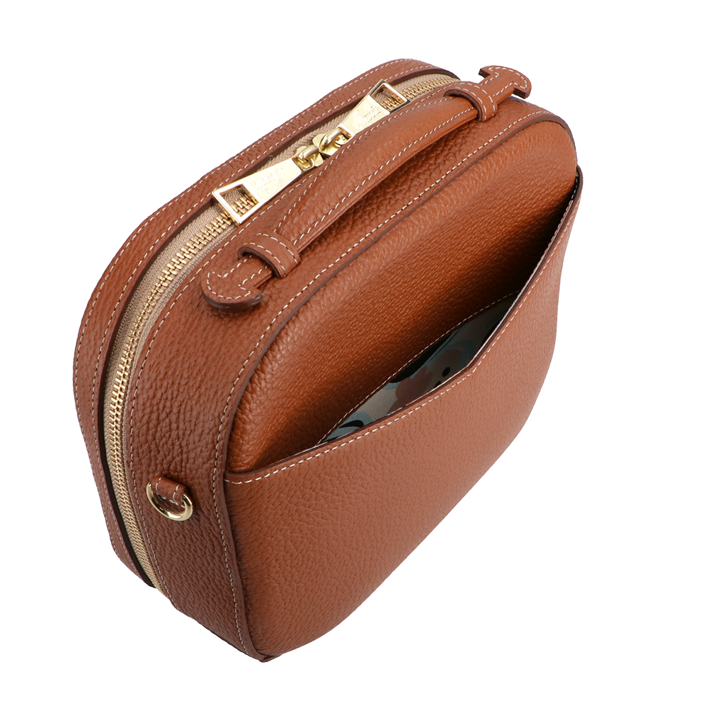 トランクケースをそのまま小さくしたような、丸いフォルムが愛らしい『シュペット(AGS)』。(ハンドバッグ)(ショルダーバッグ)(斜め掛け)(肩がけ)(ミディアムバッグ)(ミドルバッグ)(ミニバッグ)大きく口が開くメインファスナーを開けると、IANNEでお馴染みブラックベリーの内装がデザインされています。ハンドバッグでフォーマルに、付属のショルダーでアクティブに、コーディネートに合わせてさまざまな表情をお楽しみいただけます。(IANNE)(イアンヌ)(いあんぬ)(オリジナルカラー)(オリジナルレザー)(カウレザー)(牛革素材)(ファスナー)