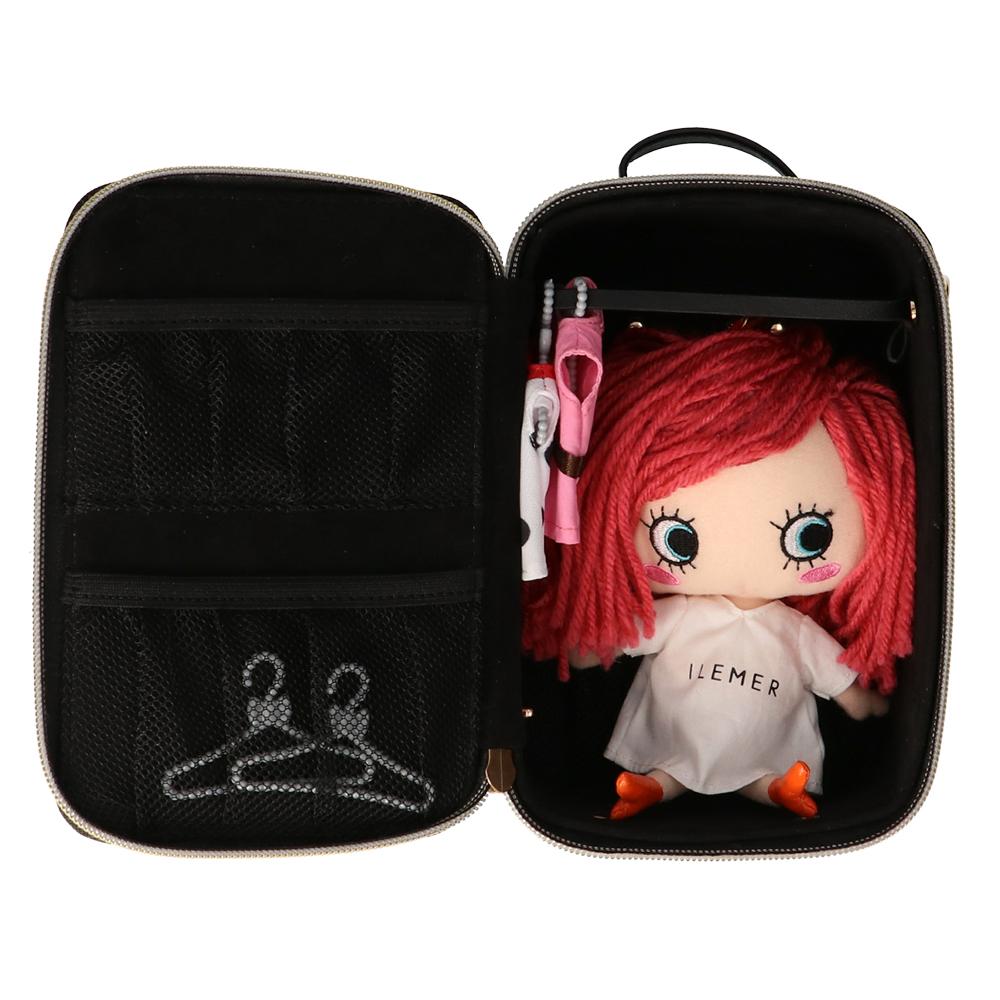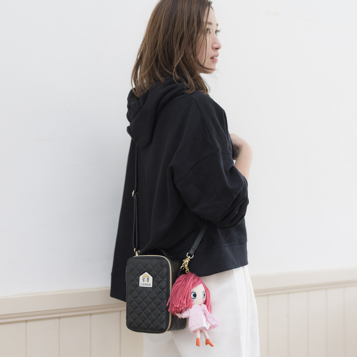 ILEMER(イルメール)(いるめーる)のハッピードール(HAPPY DOLL)のためのドレッサーポシェット。ハッピードールの着せ替えのお洋服を入れて持ち歩く事はもちろん、コスメバッグやミニバッグとしても活用できる便利なポシェット。(ショルダーバッグ)(バニティポーチ)(ポシェット)(イーマリー)(いーまりー)(ヴィーガンレザー)(エコレザー)