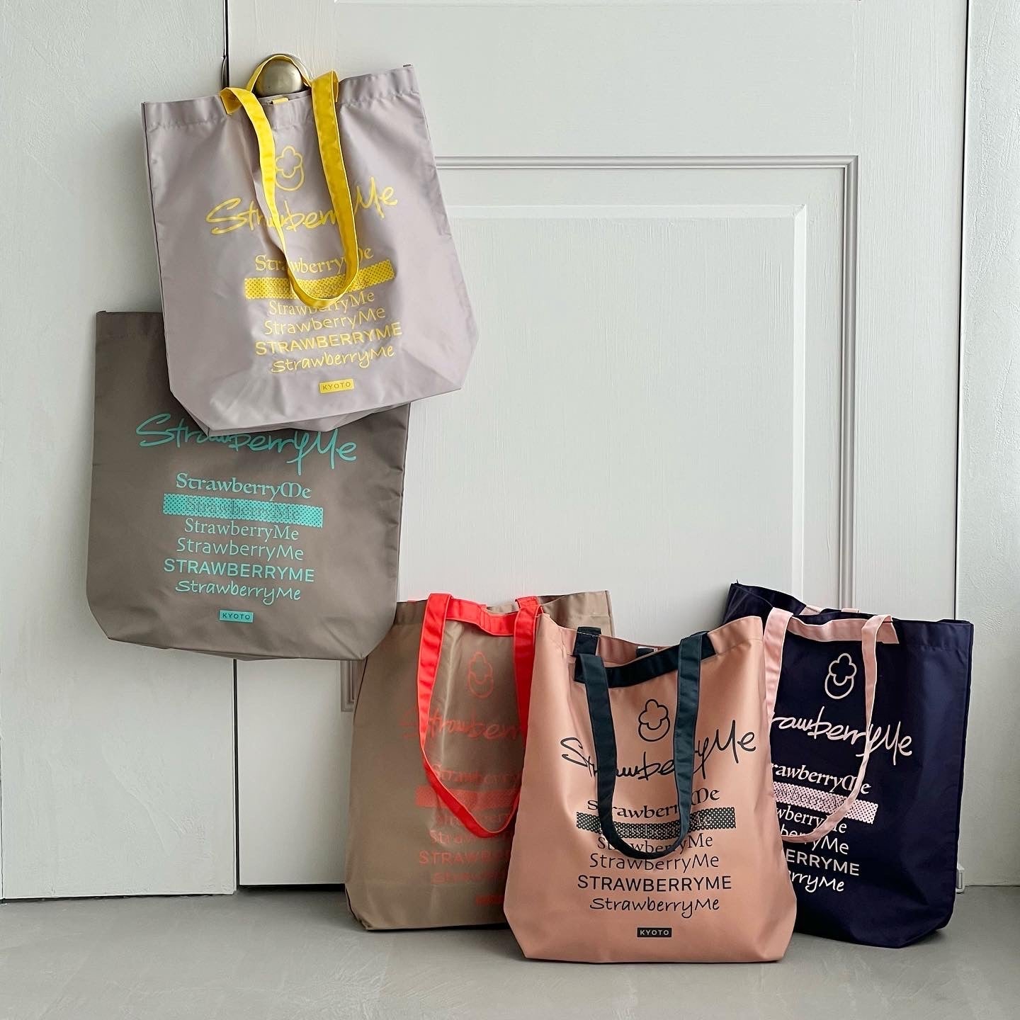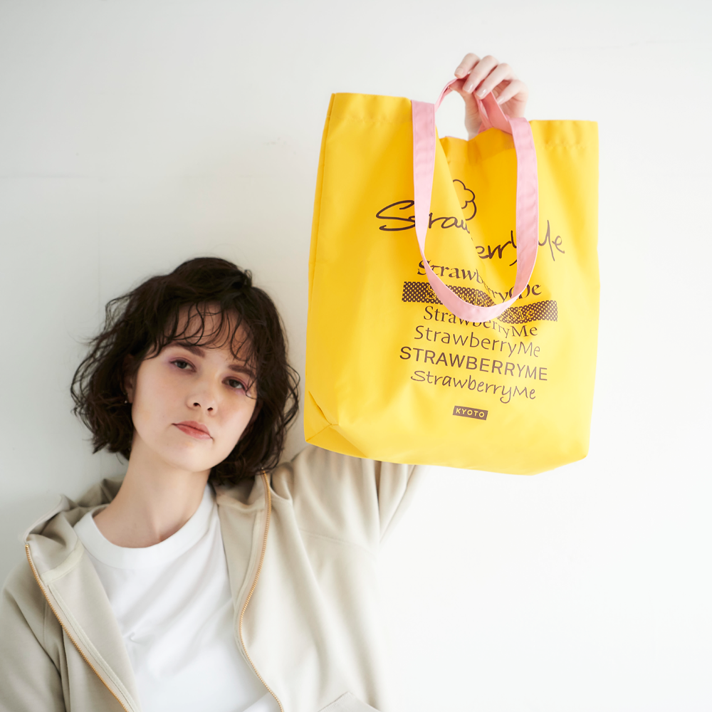 StrawberryMe(ストロベリーミー)(すとろべりーみー)のカラフルでポップな大容量A4エコバッグ『ICHIBA/イチバ』。(エコバッグ)(折りたたみ)(撥水性)(防水ナイロン)お買い物バッグに最適な防水ナイロンに、手持ち?肩がけができる2way仕様。(ショッピングバッグ)(ショルダーバッグ)(バイカラー)