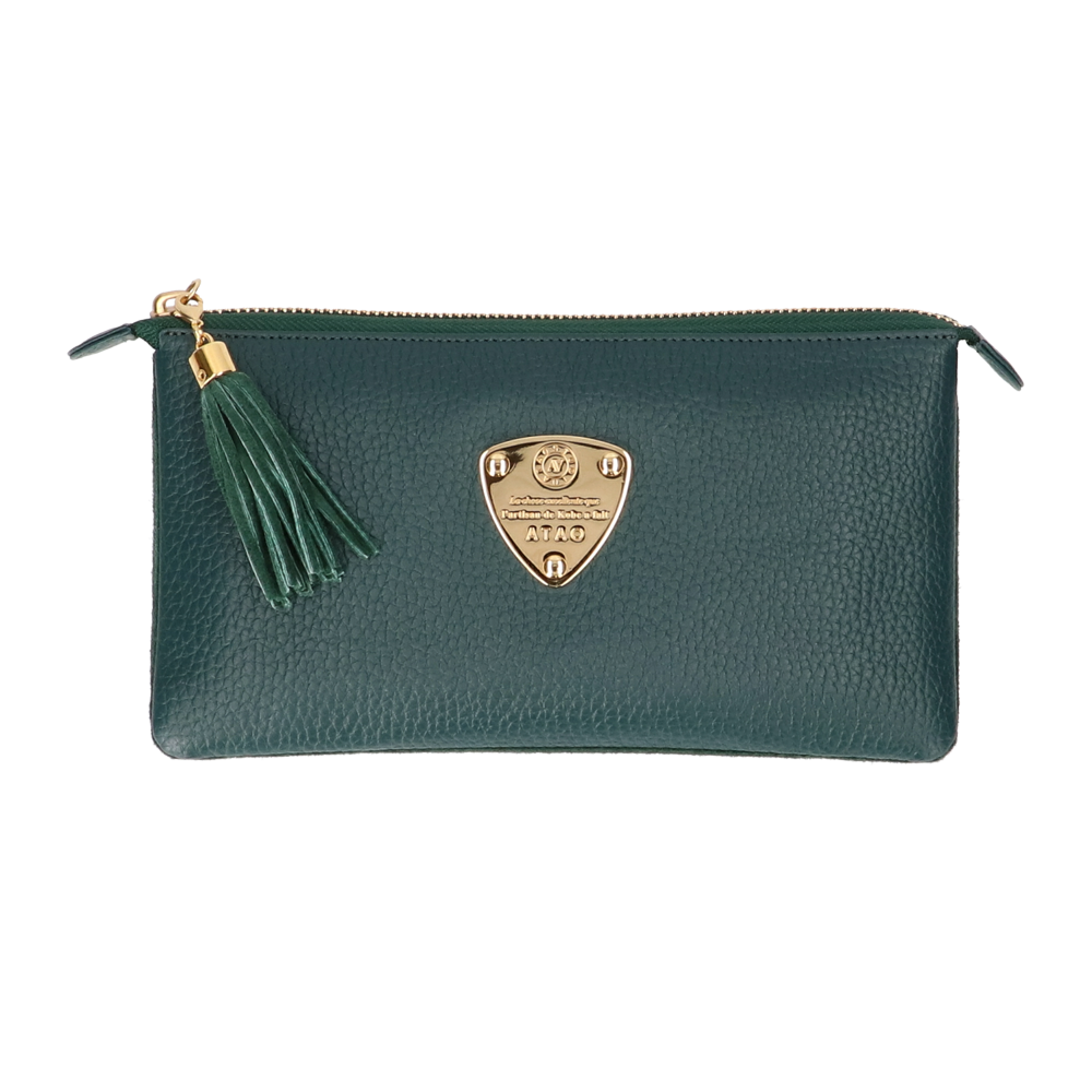 大人気のお財布ポシェット(ウォレットポシェット)(クラッチバッグ)【オフィスブーブー】に、植物のように青々と瑞々しいatelierAtao(アトリエアタオ)限定『ボタニカルグリーン』登場。生き生きとした美しい発色は、光の加減でグリーンにもネイビーにも見える絶妙なカラーです。