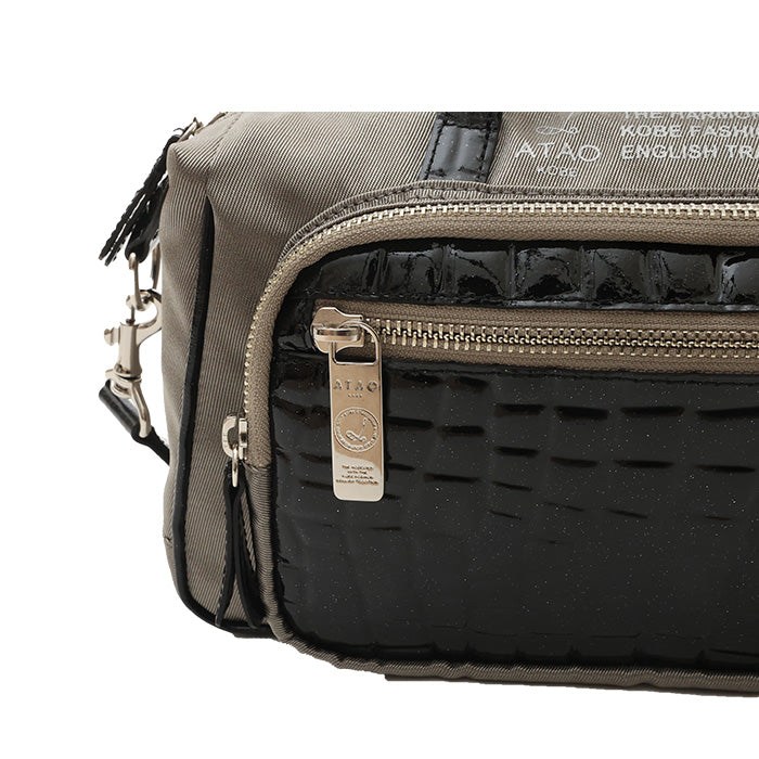 ゴルフブランドとして誕生したATAO GOLF。今季のシーズンでは、新ライン「スマルトシリーズ」。イタリアンレザーとナイロン素材を組み合わせ、晴れの日も雨の日も思うがままに。シンプルなアイテムトーンは、ゴルフプレーはもちろん日常でも愉しめます。どこでどのようにアイテムを取り入れるか、あなた次第。ここが原点であり、あたらしい日常への入り口です。上質で光沢感のあるイタリアのエナメルレザーとナイロンを組み合わせ、職人による手仕事で生産したこだわりのバッグとなります。エナメルはイタリア語で「スマルト」と呼ぶことから、シリーズ名が誕生。急な天候の変化にも対応できる撥水加工の機能性に加え、持ち運びしやすい設計デザインとスマートなシルエットは、移動中などの気分を上げてくれること間違いなしです。カートでの移動中など、必須アイテムの持ち運びに便利なサイズ感です。ちょっとしたお出かけの時にも。(ATAOGOLF)(アタオゴルフ)(あたおごるふ)(男女兼用)(ユニセックス)(男性も使える)(メンズ)(smalt mini tote bag)(スマルトミニボストンバッグ)(ミニバッグ)(ハンドバッグ)(ショルダーバッグ)(斜め掛けバッグ)(ワンショルダー)(肩掛けバッグ)