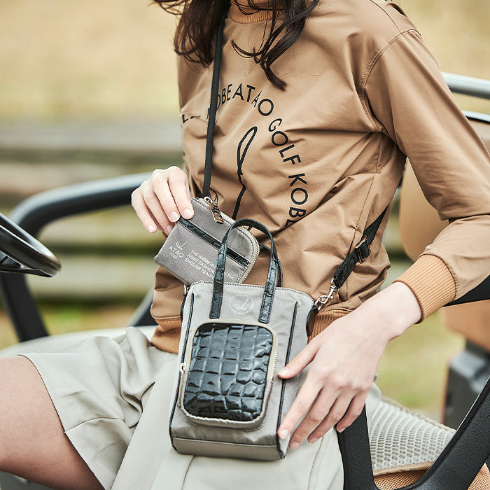ゴルフブランドとして誕生したATAO GOLF。今季のシーズンでは、新ライン「スマルトシリーズ」。イタリアンレザーとナイロン素材を組み合わせ、晴れの日も雨の日も思うがままに。シンプルなアイテムトーンは、ゴルフプレーはもちろん日常でも愉しめます。どこでどのようにアイテムを取り入れるか、あなた次第。ここが原点であり、あたらしい日常への入り口です。上質で光沢感のあるイタリアのエナメルレザーとナイロンを組み合わせ、職人による手仕事で生産したこだわりのバッグとなります。エナメルはイタリア語で「スマルト」と呼ぶことから、シリーズ名が誕生。急な天候の変化にも対応できる撥水加工の機能性に加え、持ち運びしやすい設計デザインとスマートなシルエットは、移動中などの気分を上げてくれること間違いなしです。縦型が特徴のミニトート。ショルダータイプで、他のバッグと組み合わせも相性抜群です。(ATAOGOLF)(アタオゴルフ)(あたおごるふ)(男女兼用)(ユニセックス)(男性も使える)(メンズ)(smalt mini tote)(スマルトミニトート)(すまるとみにとーと)(ミニバッグ)(ポシェット)(斜め掛け)(ワンショルダー)(肩掛け)(ハンドバッグ)